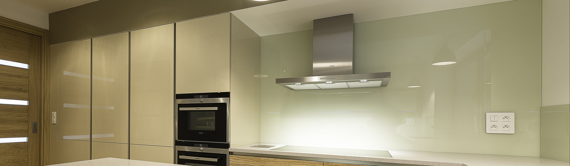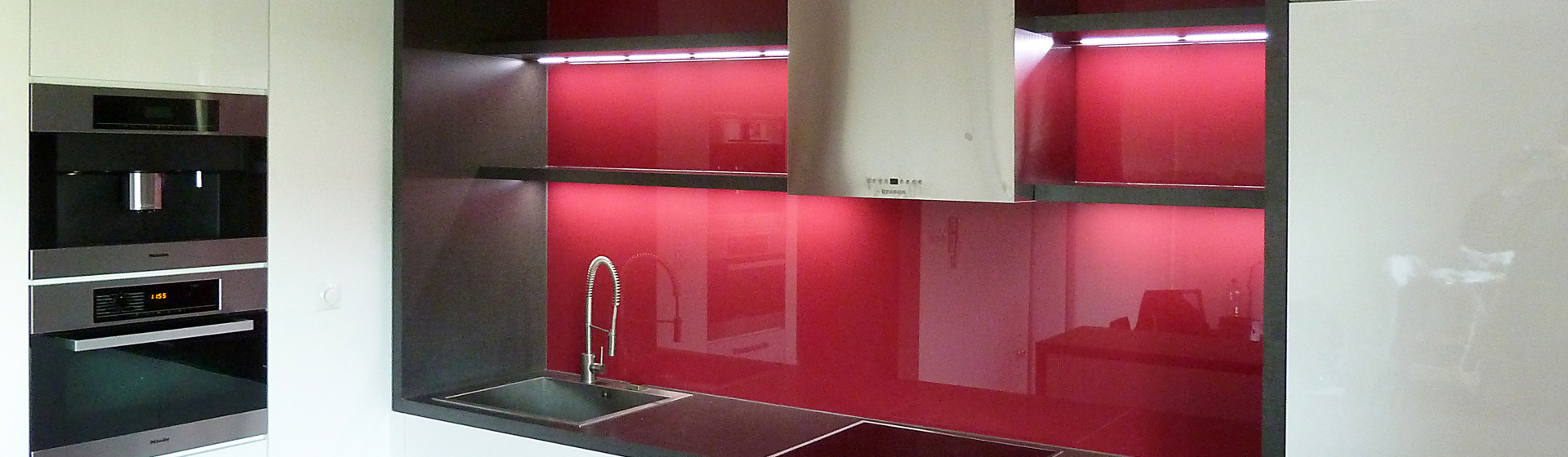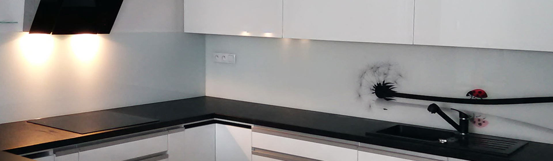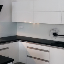 Realizace skleněného obkladu pro paní Moniku Zátkovskou v lokalitě Kladno – Doksy byla navržena s ohledem na praktické využití kuchyně i požadavek na čistý a nenápadný design. Skleněný obklad zde slouží jako funkční ochrana stěny a zároveň přirozeně doplňuje celkový vzhled interiéru.
