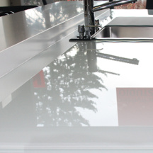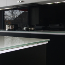 Skleněné obklady byly navrženy tak, aby přesně navazovaly na kuchyňskou linku a respektovaly dispoziční řešení prostoru. Díky výrobě na míru bylo možné přesně vyřešit rozměry, výřezy i detaily napojení na ostatní prvky kuchyně.